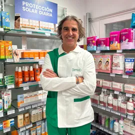 En Joan continúa la història de la farmàcia des de fa 23 anys sent el farmacèutic titular.